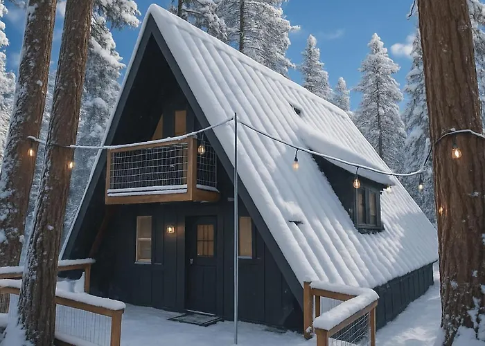 Die Modern Black A-Frame Overlooking A Meadow W Ac! bieten den Gästen Medieneinrichtungen, darunter WLAN und ein Fernsehen mit mehreren Kanälen, sowie ein Bügeleisen/Bügelbrett und eine Klimaanlage für zusätzlichen Komfort. Der Innenraum ist mit einem Schreibtisch ausgestattet und verfügt über einen Kamin. Zur Ausstattung des Badezimmers gehören auch eine Wellness-Badewanne. Ein Haartrockner und Morgenmäntel stehen auch zu Ihrer Verfügung.